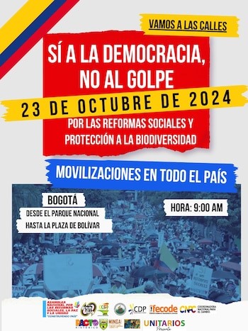 En segundo lugar, las declaraciones del presidente de Colombia Gustavo Petro en la reciente Asamblea General de las Naciones Unidas, en las que señaló el carácter genocida de la actuación de Netanyahu y su posterior llamado en una plaza de Nueva York a las tropas yanquis a desobedecer las órdenes de Trump, provocaron la cancelación de su visa y una significativa crisis diplomática. Además, Petro ordenó a los representantes consulares de Israel en Colombia que abandonaran el país y anunció la revisión del Tratado de Libre Comercio vigente entre los dos países. Ese enfrentamiento político caldeó los ánimos de los sectores políticos que respaldan al gobierno y su influencia en organizaciones sindicales y sociales. Organizaciones como la Central Unitaria de Trabajadores CUT, la Federación Colombiana de Educadores FECODE y su filial más importante la Asociación Distrital de Educadores de Bogotá, se sumaron oficialmente a la convocatoria del 7 de octubre. Eso también puso en evidencia la indolencia del Pacto Histórico y su bancada parlamentaria en los dos años transcurridos y la inconsecuencia del gobierno que no convocó a la movilización. De ser así la protesta habría podido escalar y la participación multiplicarse, derrotando agresiones de grupos represivos como ocurrió con la marcha en Medellín.